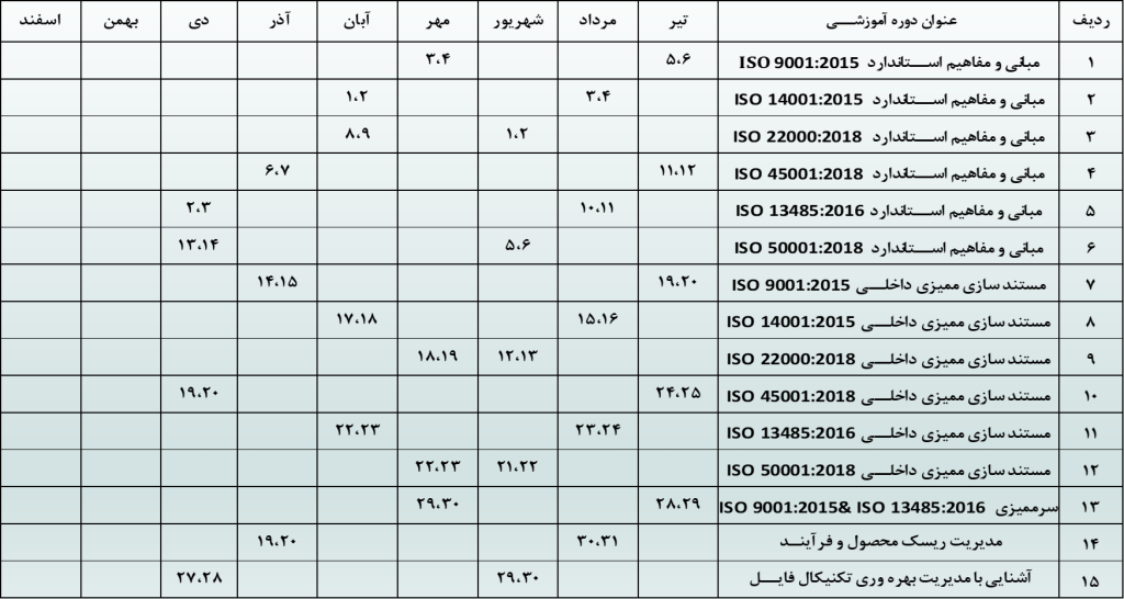 برنامه زمانبندی آکادمی آموزشBRS سال 1402